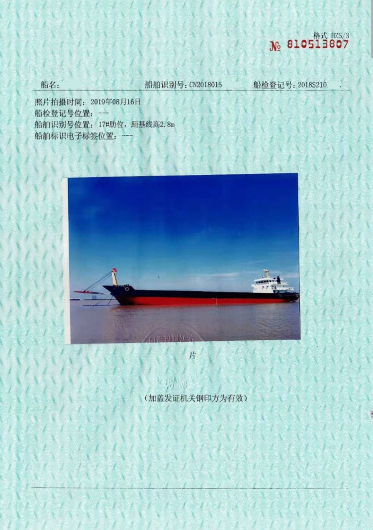 售:2018年沿海3300噸甲板貨船江蘇造尺寸:86.7*18.4*4.5主機:濰柴6200/350*2雙底雙殼在航船電聯15064482720王